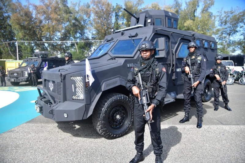 Allí se exhibieron tres vehículos blindados FURIA (Fuerza Unificada de Respuesta Inmediata Armada), ensamblados en la industria militar dominicana, así como un vehículo aéreo no tripulado. Ambos se usarán para resguardar la frontera dominico-haitiana, informaron las autoridades.