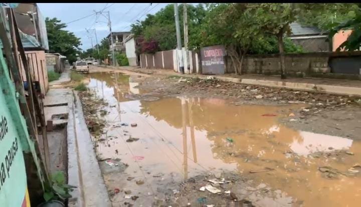 En audiovisuales enviados a la redacción de De Último Minuto, se observa el estado deplorable de las vías, cubiertas de charcos de agua, lodo y basura, lo que dificulta el tránsito tanto de peatones como de vehículos.