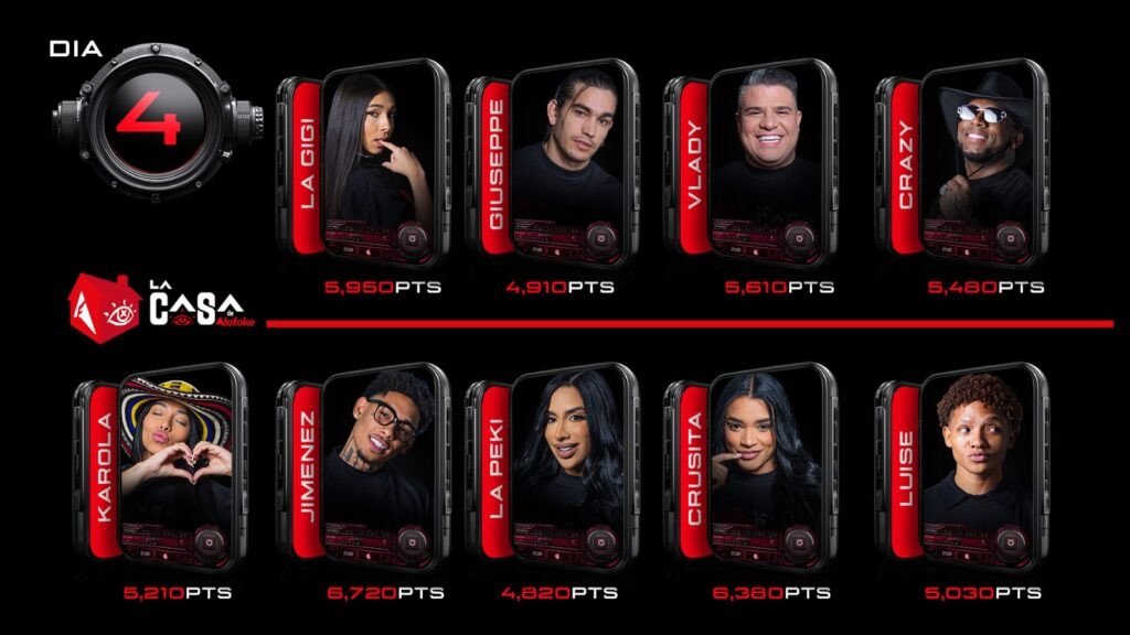 SANTO DOMINGO.– La competencia en La Casa de Alofoke se intensifica y las votaciones del día 4 revelan un panorama cada vez más reñido. El influencer Jiménezencabeza la tabla con 6,720 puntos, consolidándose como el favorito del público hasta el momento.